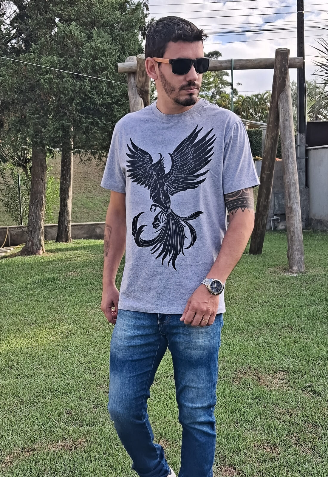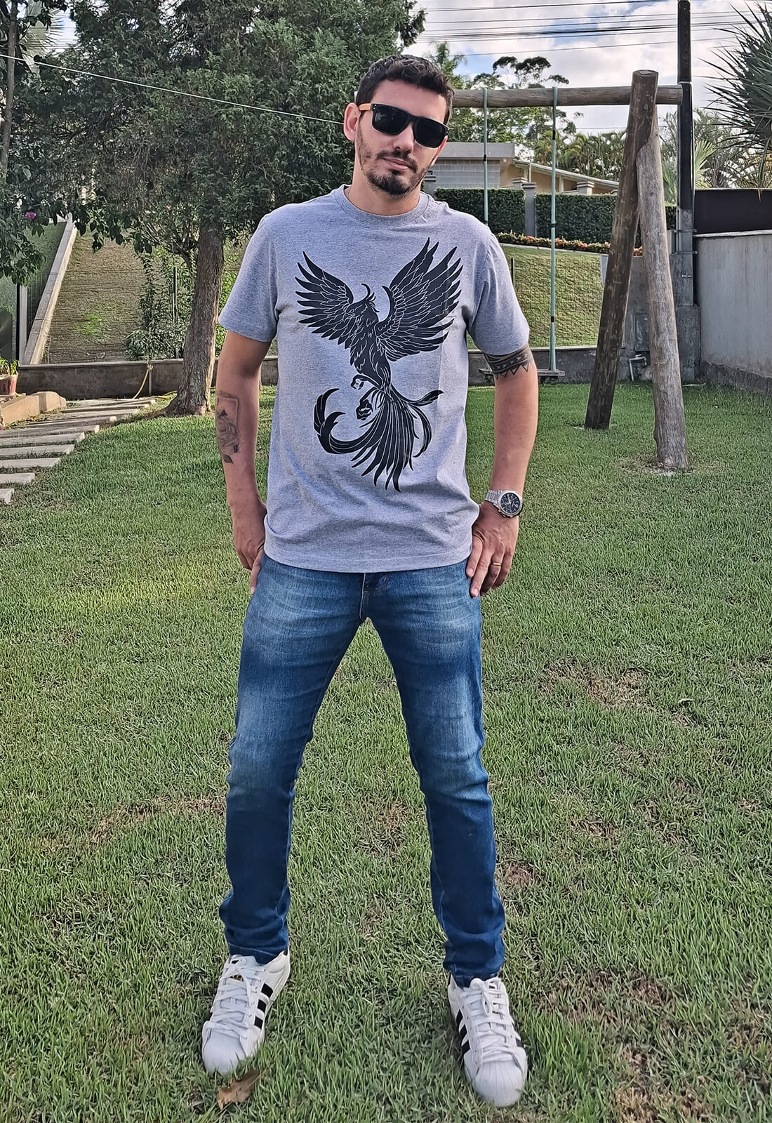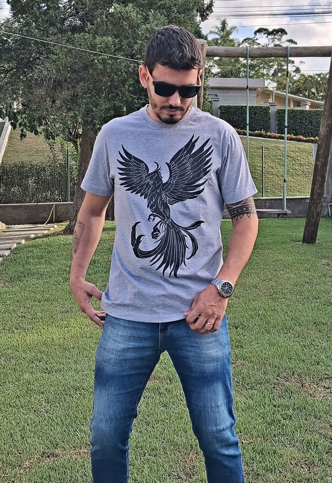 A PinkBlue traz personalidade e presença com essa camiseta feita pra quem não passa despercebido. O destaque fica por conta da estampa de águia em preto, um símbolo de liberdade, atitude e poder. A malha 100% algodão garante conforto o dia todo, enquanto o corte reto valoriza o visual urbano e versátil. Ideal pra quem curte se vestir bem sem esforço.